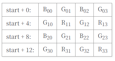奇数行由 BG 组成,偶数行由 GR 组成。